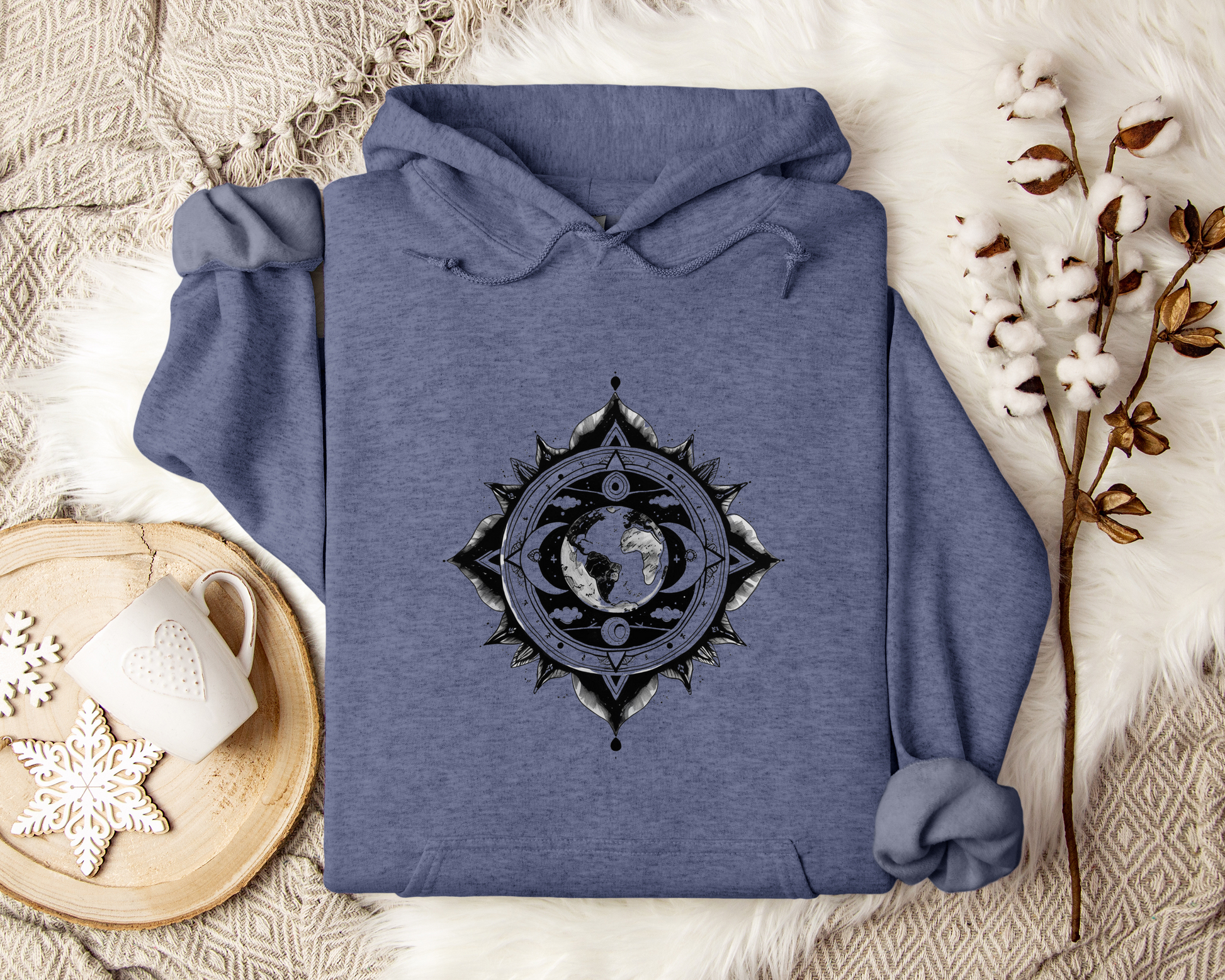 Celestial Earth Mandala Hoodie, Sacred Geometry Hoodie, Spiritual Hoodie, Mystic Geometry Sweatshirt, Astrology Hoodie, Unisex Hoodie