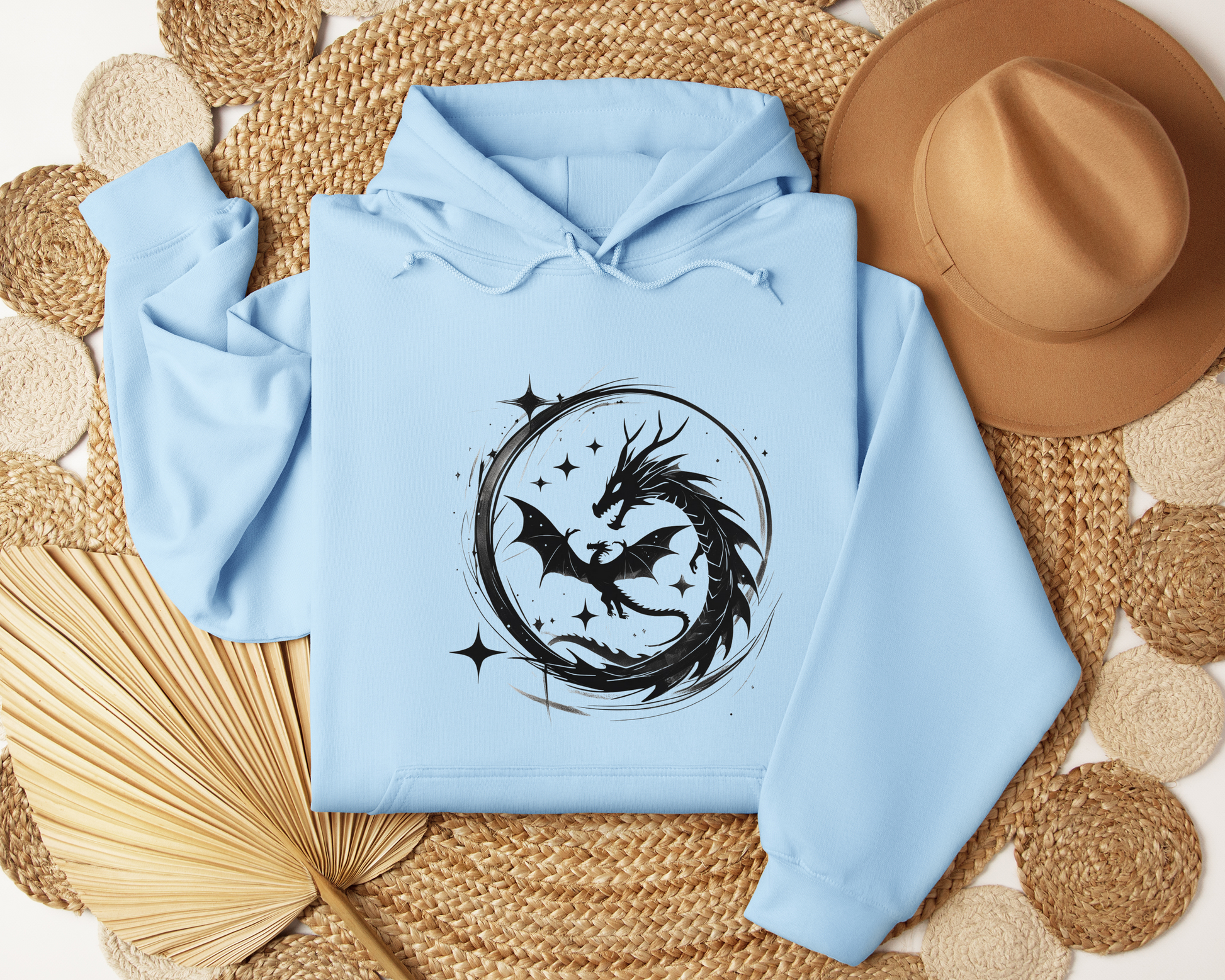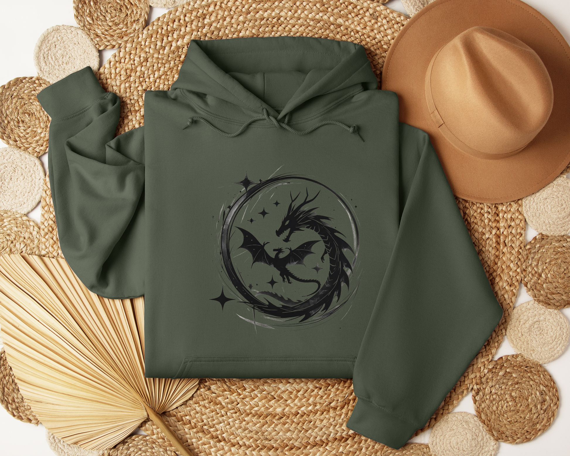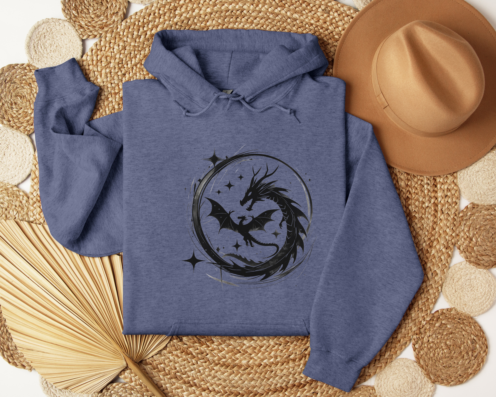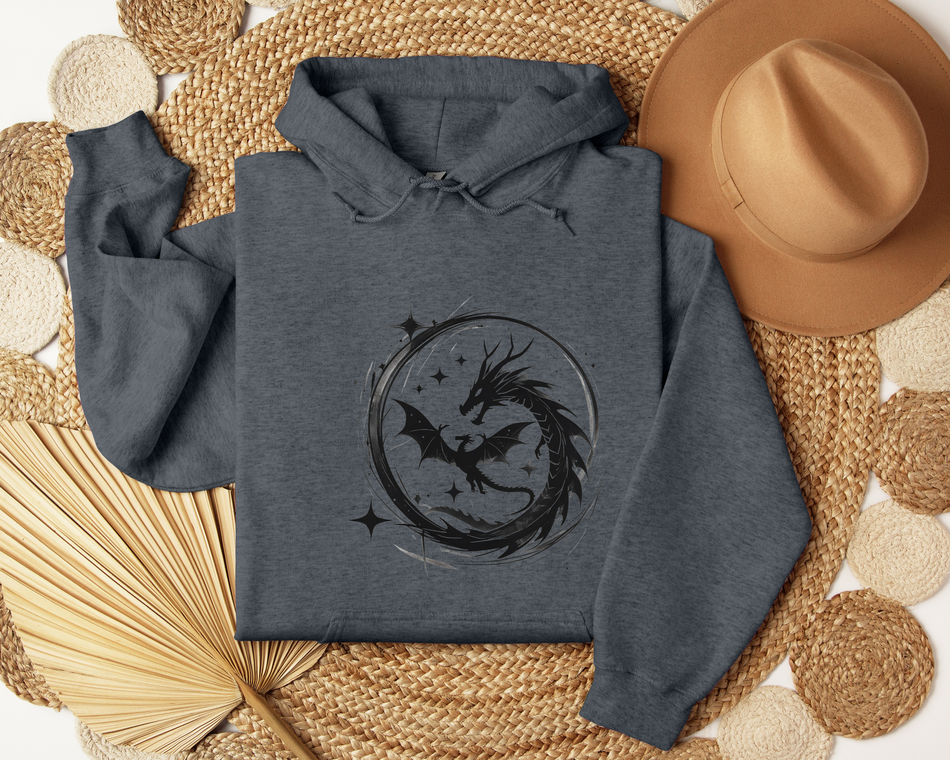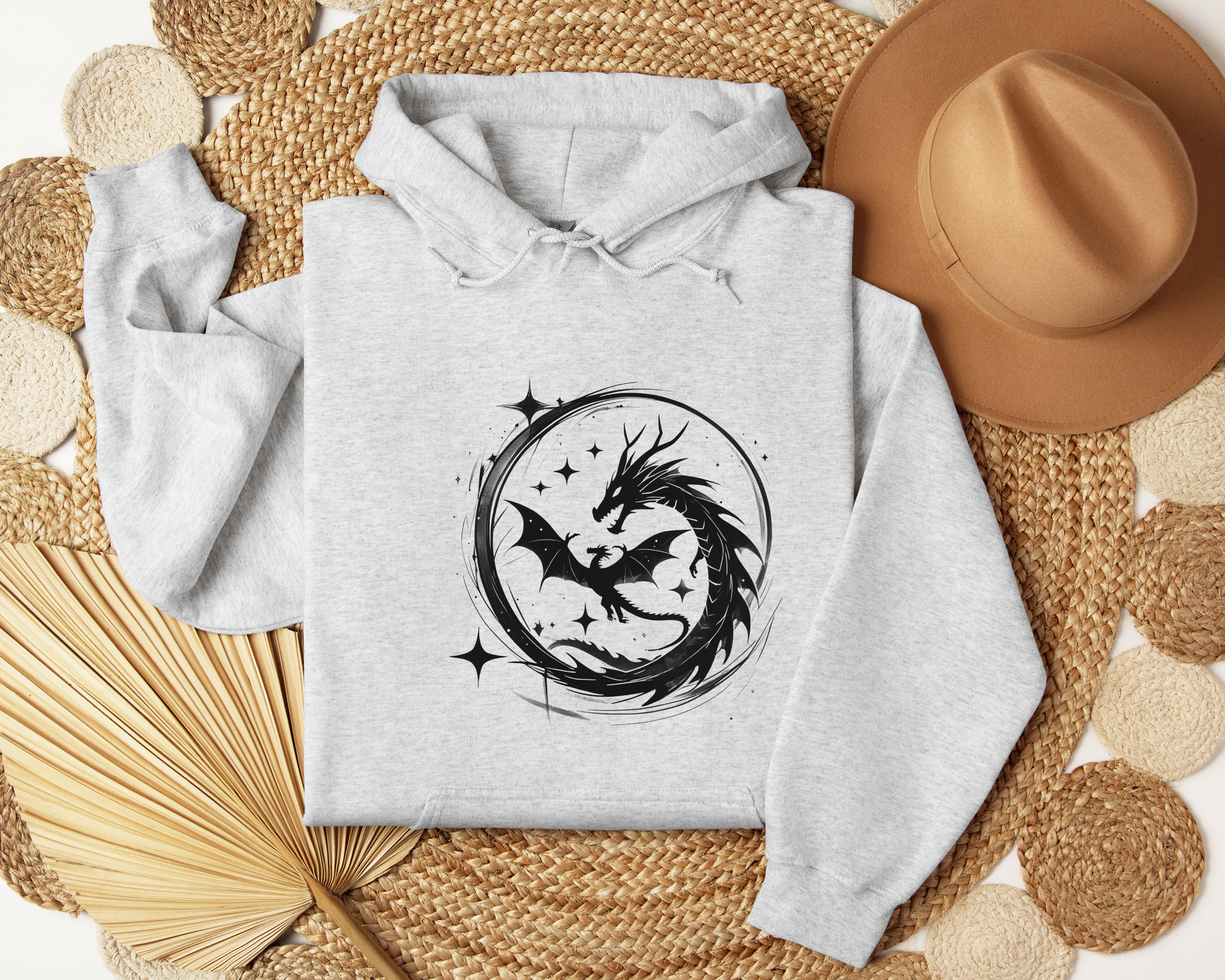 Dragon Circle Hoodie – Fantasy Dragon Sweatshirt, Celestial Stars Hoodie, Mystic Clothing, Gamer Gift, Witchy Dragon Apparel, Book Lover Gift