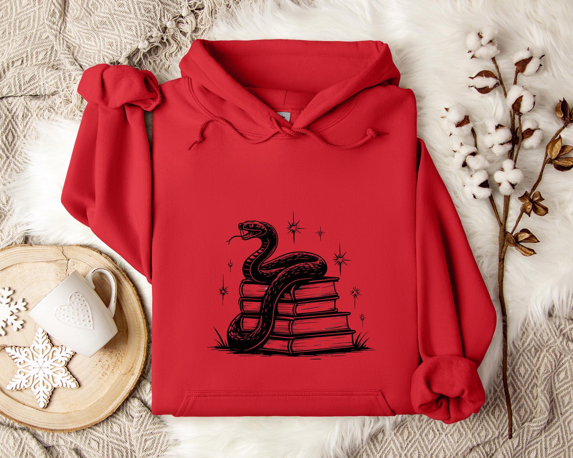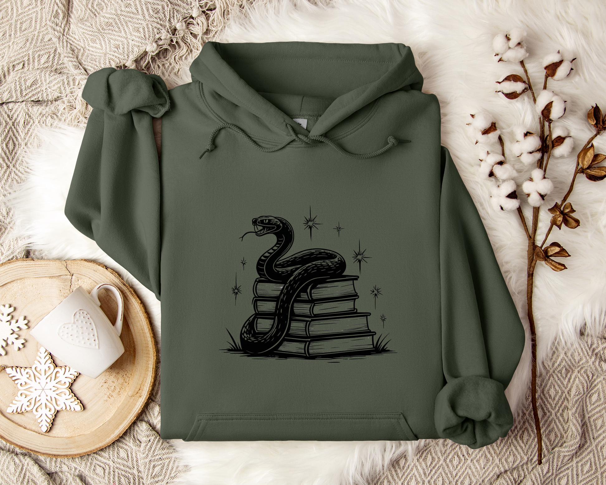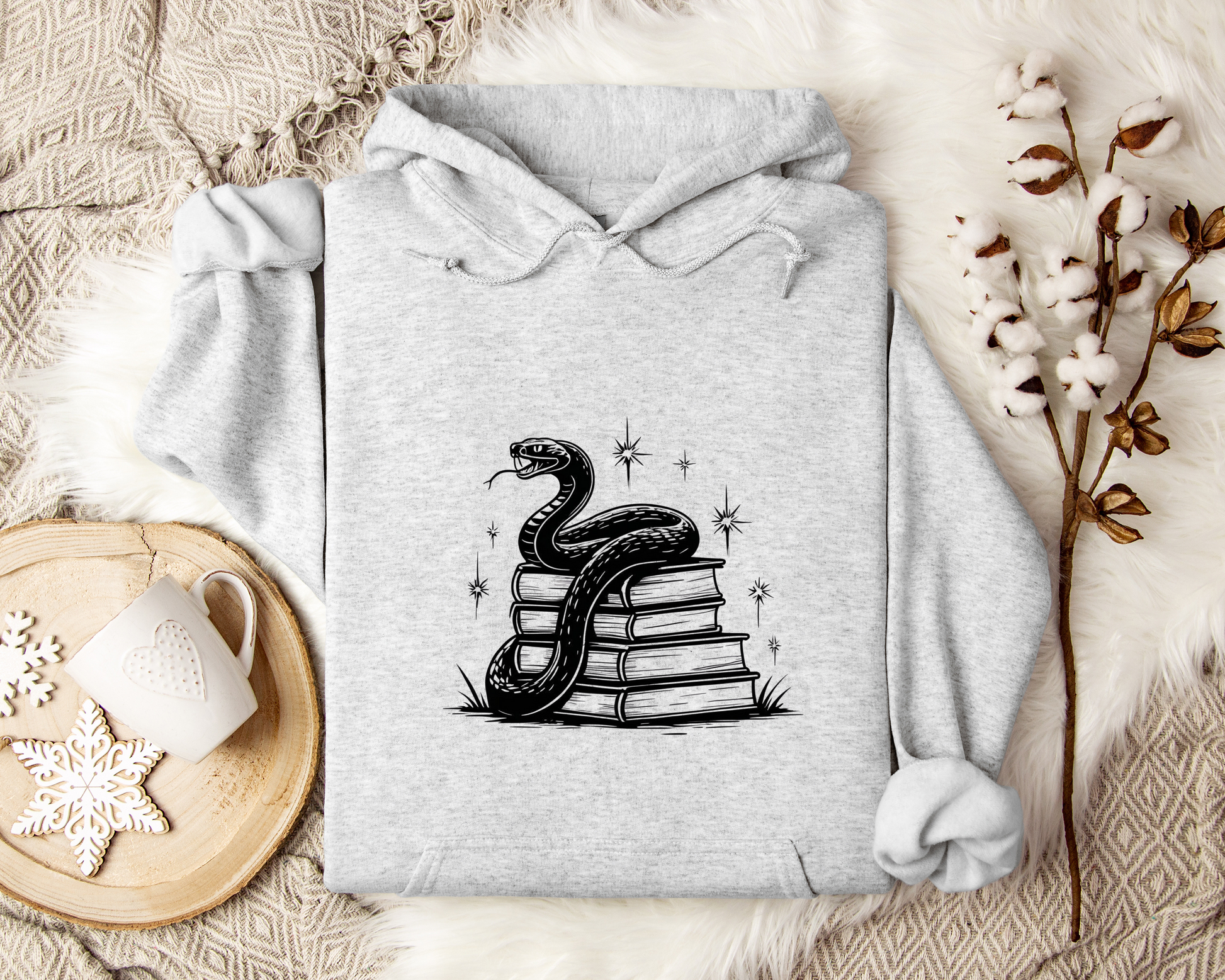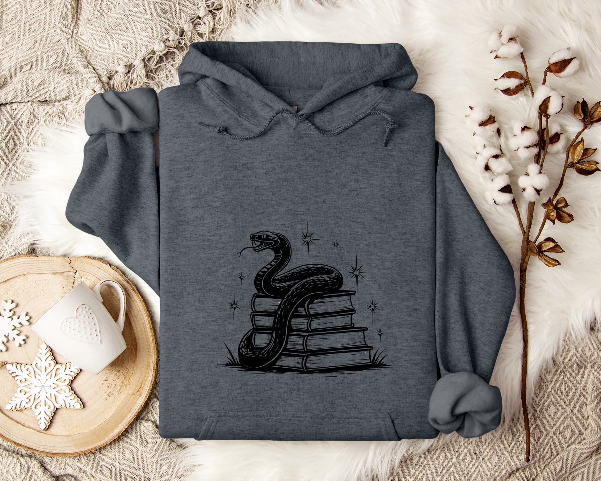 Serpent & Spellbooks Hoodie – Snake and Books Sweatshirt, Witchy Hoodie, Dark Academia Clothing, Mystical Fantasy Gift, Book Lover Gift.