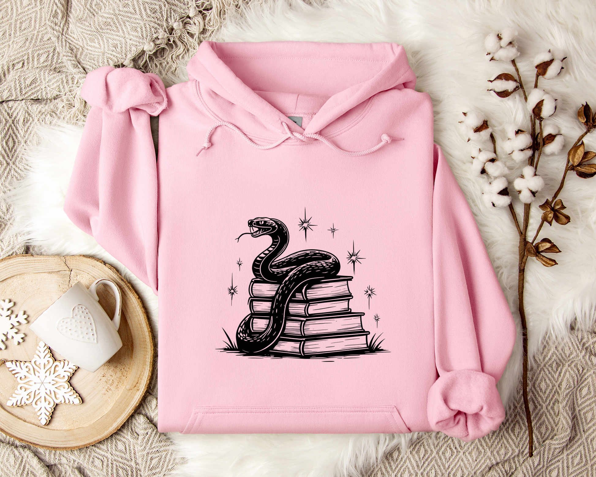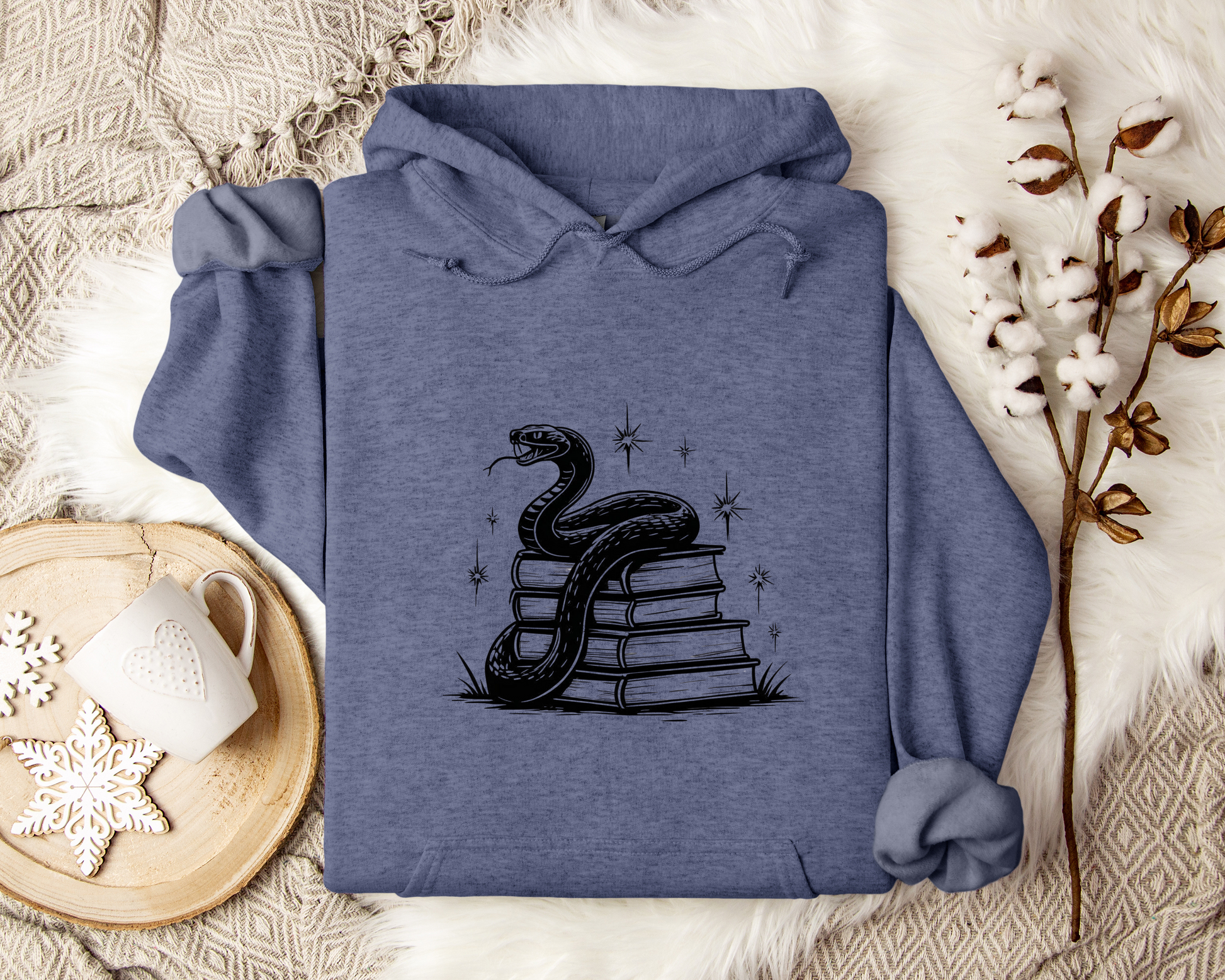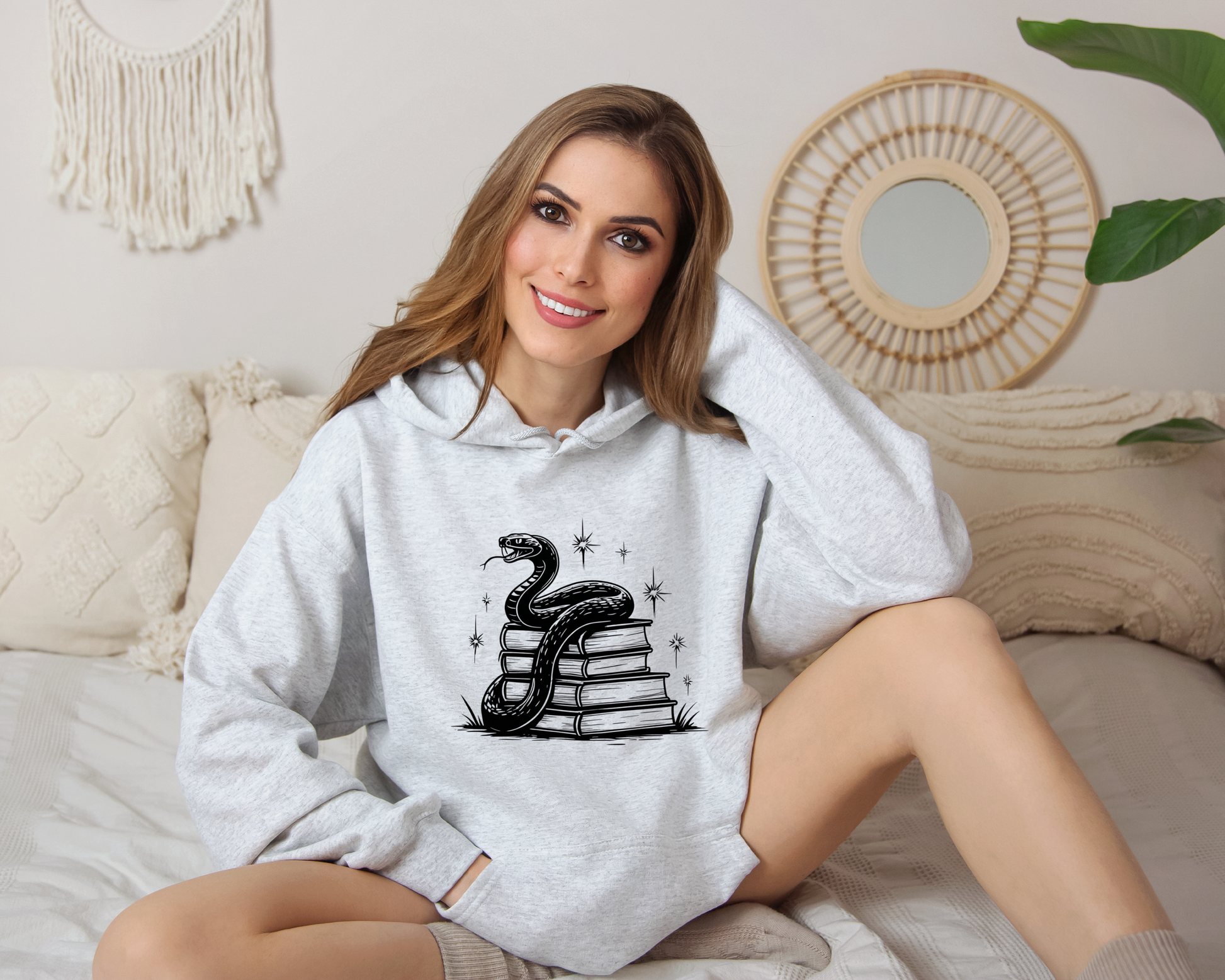 Serpent & Spellbooks Hoodie – Snake and Books Sweatshirt, Witchy Hoodie, Dark Academia Clothing, Mystical Fantasy Gift, Book Lover Gift.