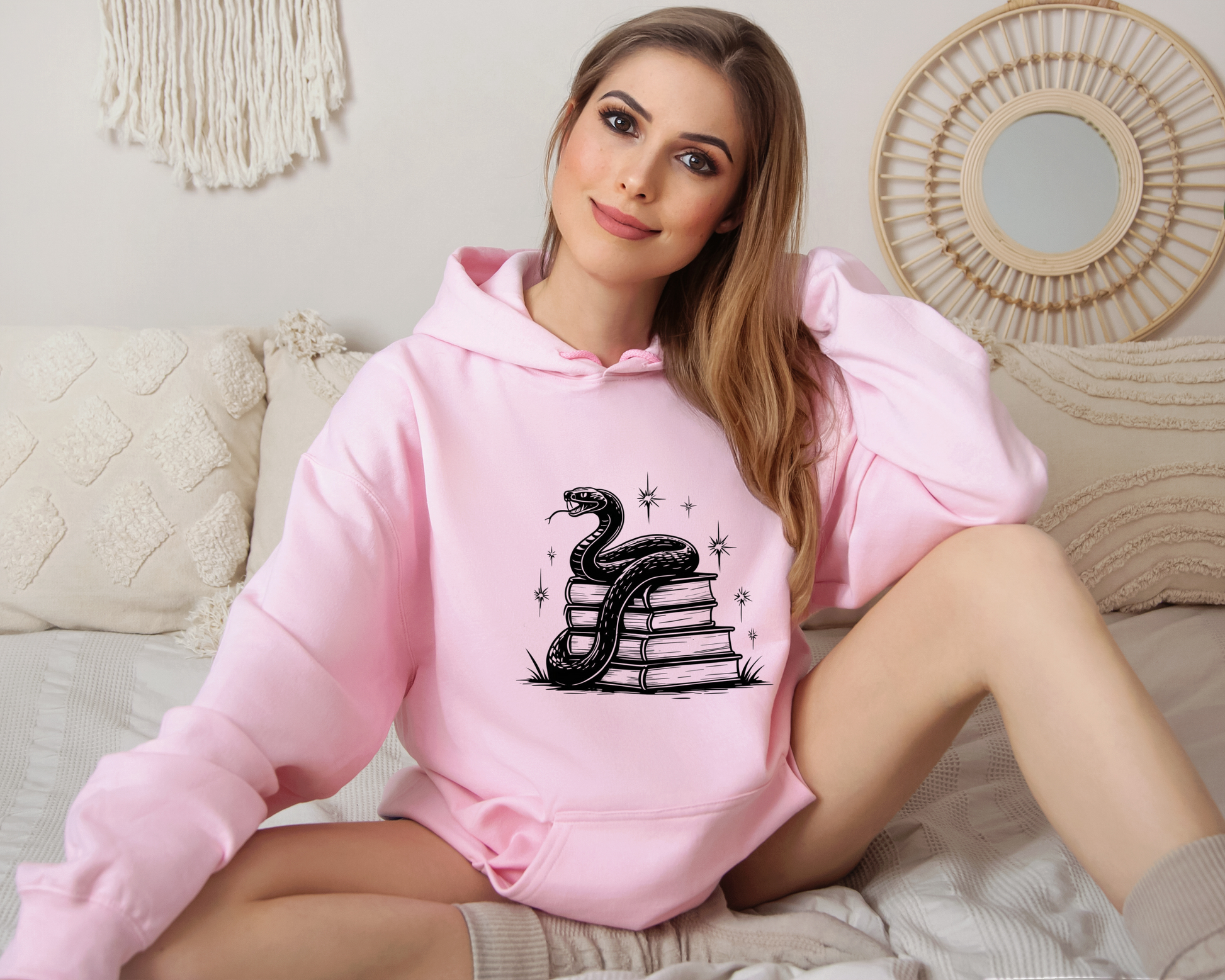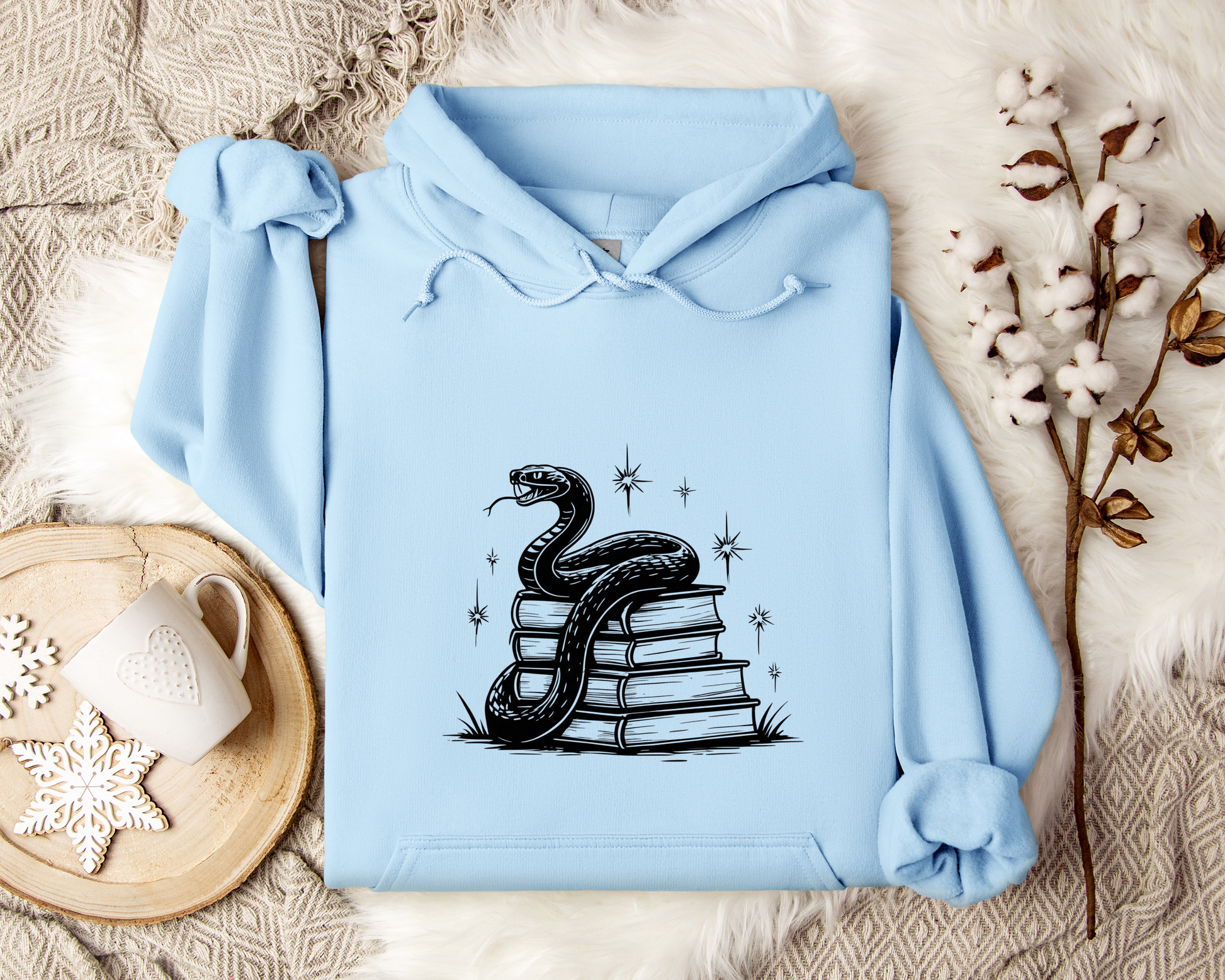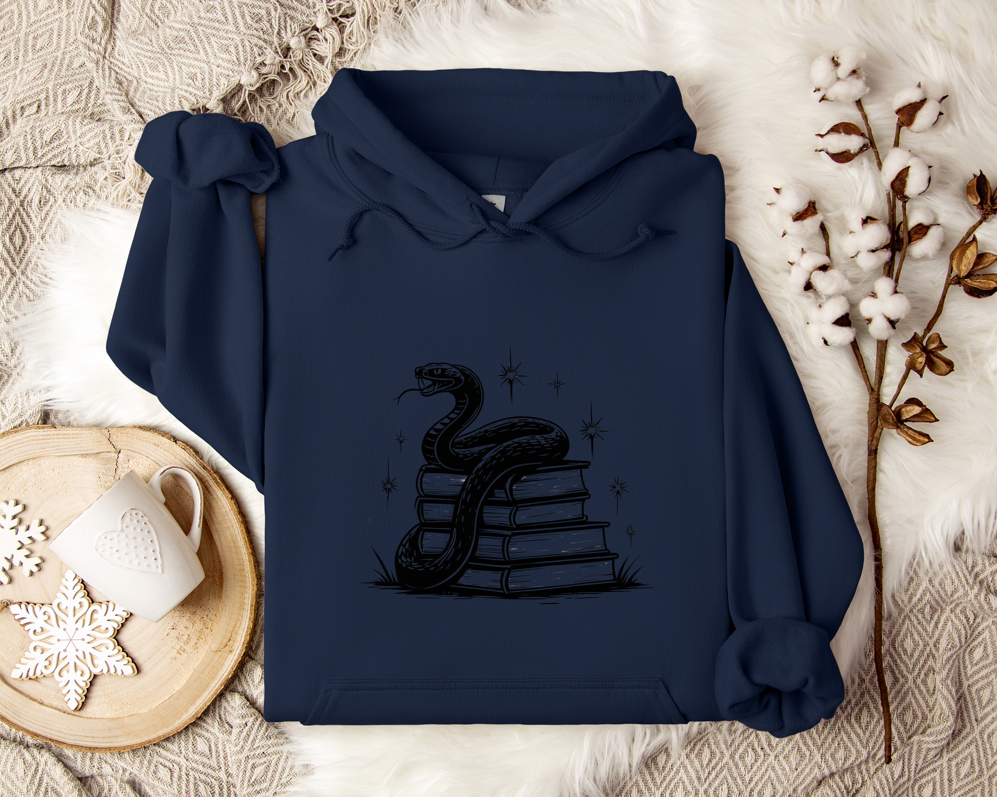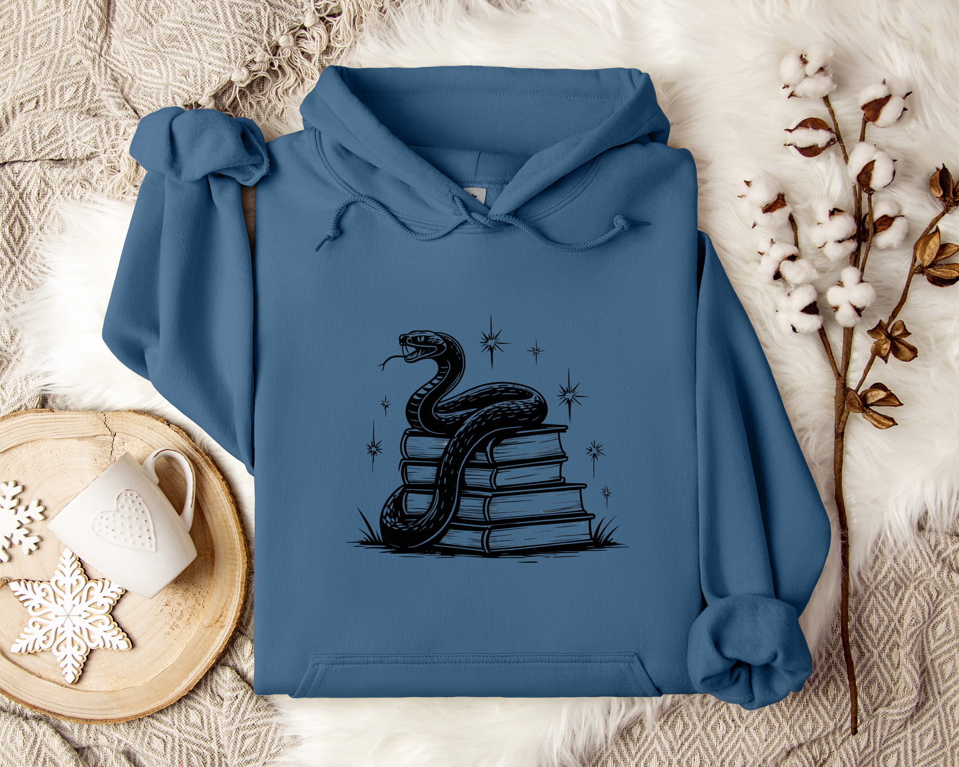 Serpent & Spellbooks Hoodie – Snake and Books Sweatshirt, Witchy Hoodie, Dark Academia Clothing, Mystical Fantasy Gift, Book Lover Gift.