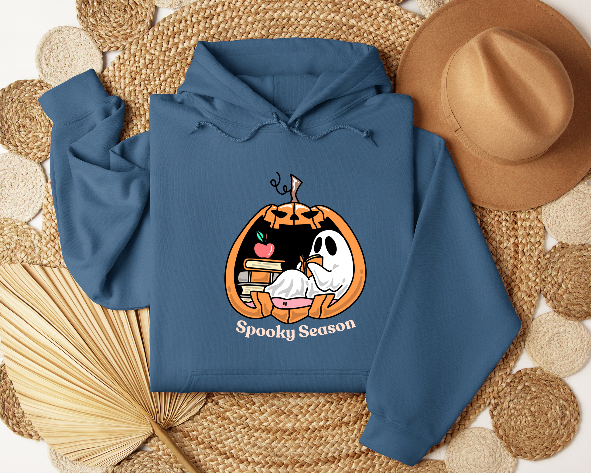 Spooky Season Hoodie | Cute Ghost Reading Pumpkin Sweatshirt | Cozy Halloween Hoodie | Fall Bookish Ghost Gift | Autumn Aesthetic Sweater